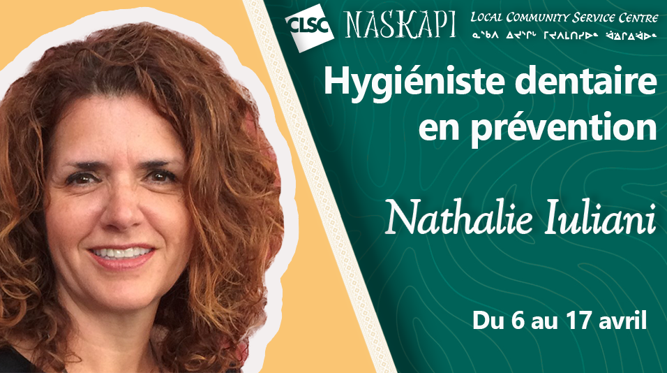 Nous sommes heureux d'annoncer que Kelly Desmarais, notre hygiéniste dentaire du programme de santé publique, sera en visite à Kawawachikamach du 25 mars au 5 avril. Reconnue pour son expertise en soins préventifs, Kelly travaille principalement avec l'école et la garderie de notre communauté, assurant ainsi que la santé dentaire de nos enfants est en pleine forme.